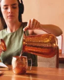 Made for serving and for display. The Rivera copper pitcher combines pure copper construction with a sturdy, balanced handle. Its clean shape fits naturally on dining tables and kitchen counters, while the metal surface develops a beautiful patina over time. Functional, long-lasting, and quietly elegant.